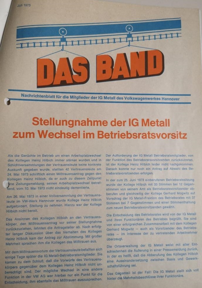 1973 Das Band Wechsel im Betrtiebsratsvorsitz